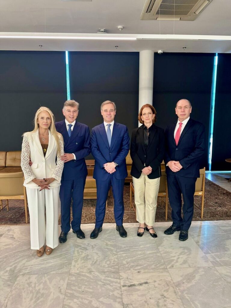 O presidente da Conib, Claudio Lottenberg, sua esposa e ativista, Ida Sztamfater, o vice e a secretária geral da instituição, Luiz Kignel e Celia Parnes, mantiveram encontros nesta quarta-feira, 28 de maio, em Brasília com os ministros do Supremo Tribunal Federal André Mendonça e Luiz Fux e com o governador de Mato Grosso, Mauro Mendes.