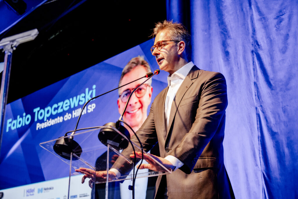 Jairo Roizen, head de Comunicação da Federação Israelita do Estado de São Paulo e mestre de cerimônias, abriu o evento dizendo que esse encontro celebrava não somente ideias e conexões, mas também a força da nossa identidade, da nossa juventude e da nossa comunidade.